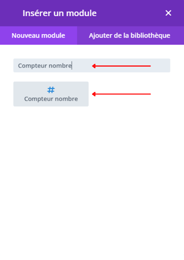1. Commencez en insérant une rangée puis insérez le module “compteur nombre”.
