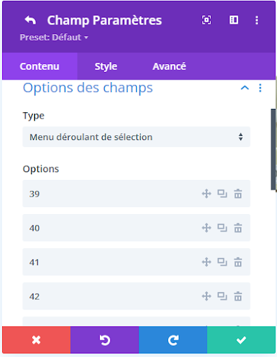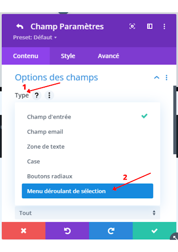 6. Puis dans “type” sélectionnez “menu déroulant de sélection”.