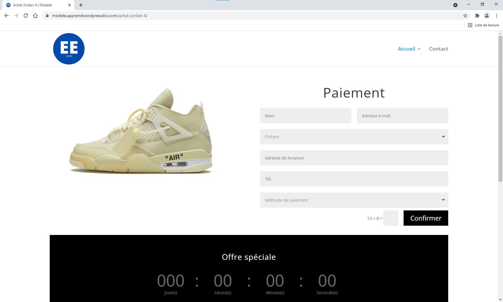 Le formulaire permettra aux clients de vous transmettre les informations nécessaires à la livraison et d’effectuer le paiement.