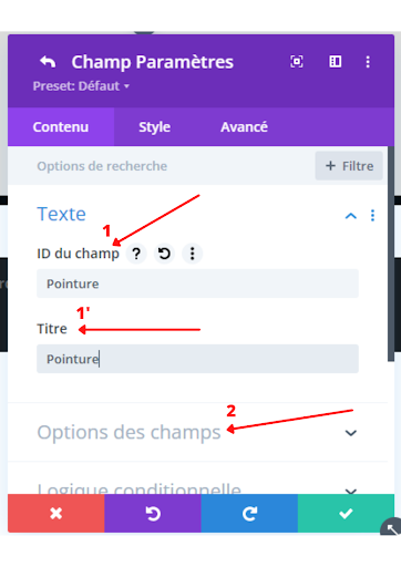 5. Dans “ID du champ”, vous pourrez identifier le champ sélectionné. (Point 1)