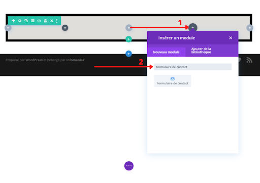 Dans la barre de recherche, tapez “formulaire de contact” (point 2) puis sélectionnez le module.
