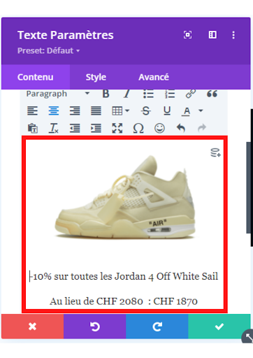 2. Il faut coller l’image dans la section « texte » puis ajouter le texte que vous souhaitez.