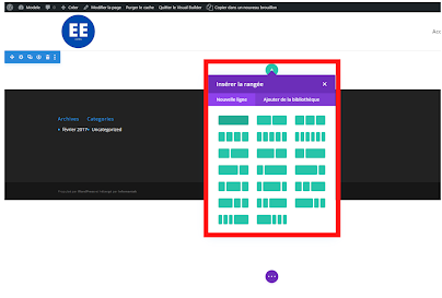 2. Pour insérer un module, il vous faut commencer par ajouter une rangée. Pour cela, cliquez sur le “+” vert.