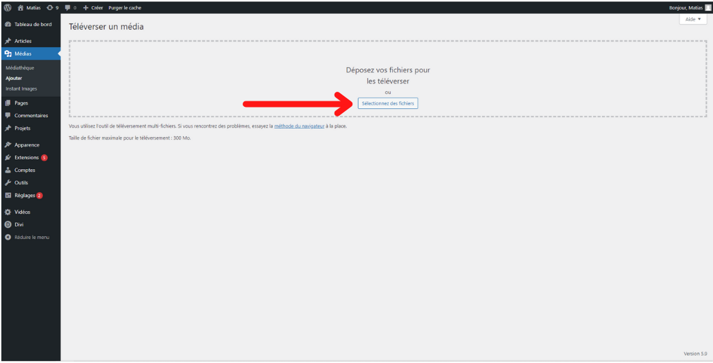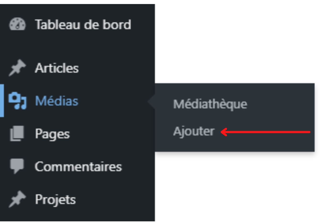 Ci-dessous, vous retrouverez quelques-uns des principaux menus que nous utiliserons fréquemment dans ce tutoriel. Nous commencerons ici par le sous-menu « médias ».