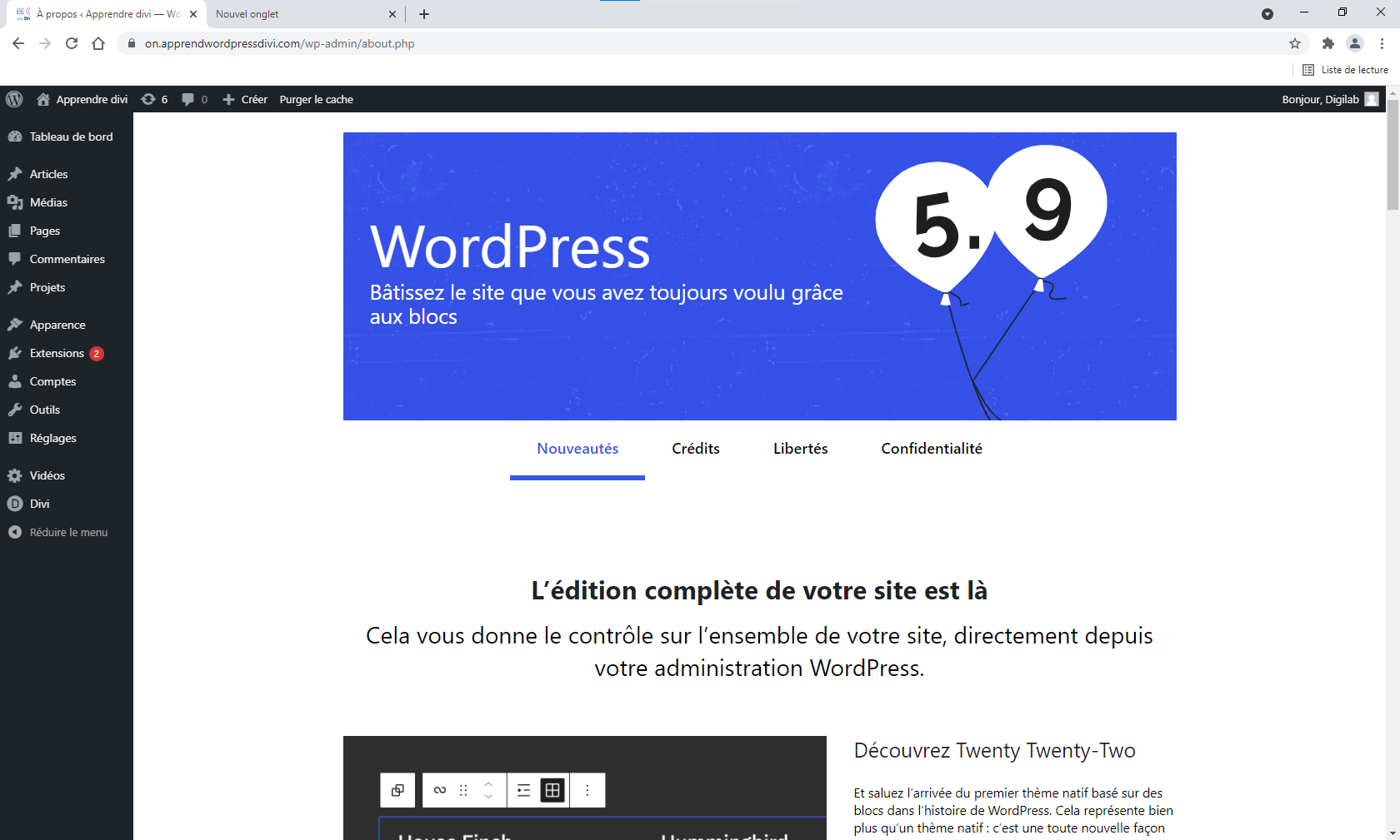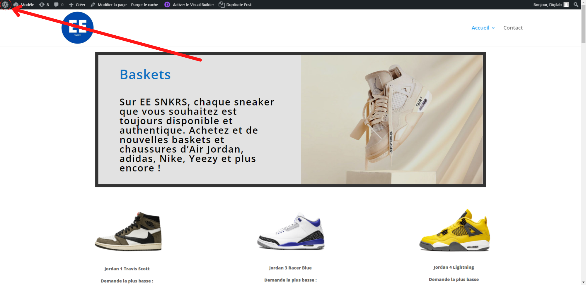 2. Sur votre site de pratique WordPress, activez le “Visual Builder!”