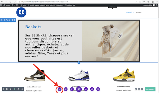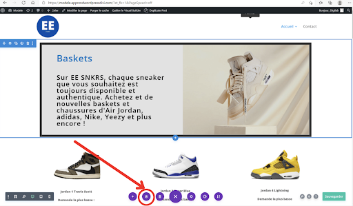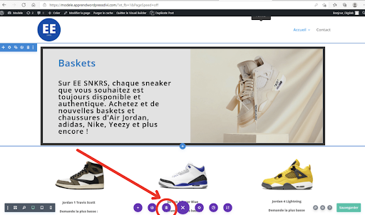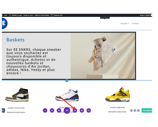 La dernière option violette avec un “+” comme icône vous sert à charger une mise en page déjà disponible sur divi ou une mise en page que vous avez sauvegardée.