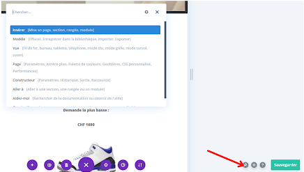 Il y a une dernière option en gris avec une icône de loupe, celle-ci sert à chercher directement une manipulation que vous voulez faire, comme insérer une rangée, une ligne, une colonne, un module, etc.