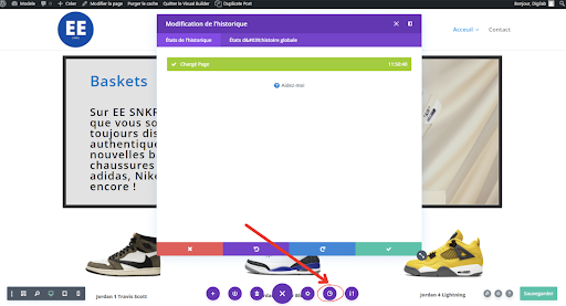 Ensuite, à gauche il y a l’option avec une icône d’horloge, cette option sert à voir l’historique des états de la page.